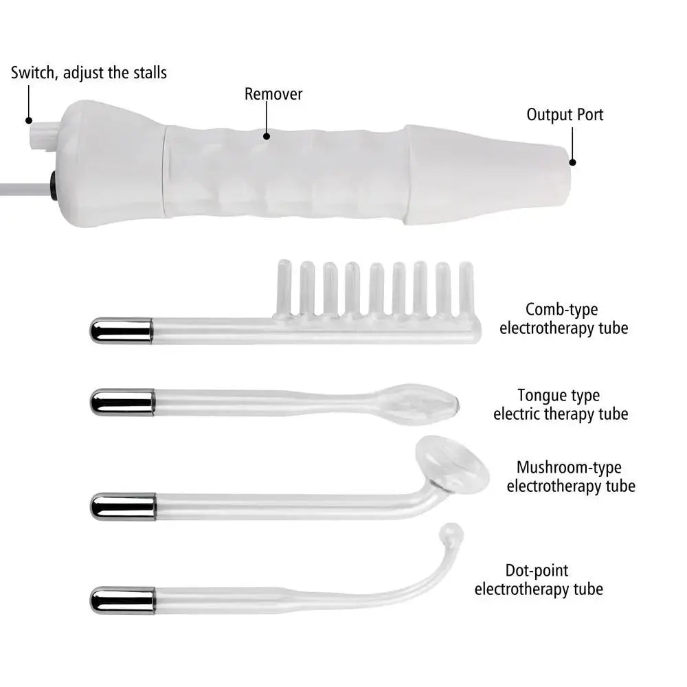 4 Specialized Glass Tubes: Includes Mushroom, Tongue, Bent, and Comb electrodes, each tailored to specific facial areas and treatments.
