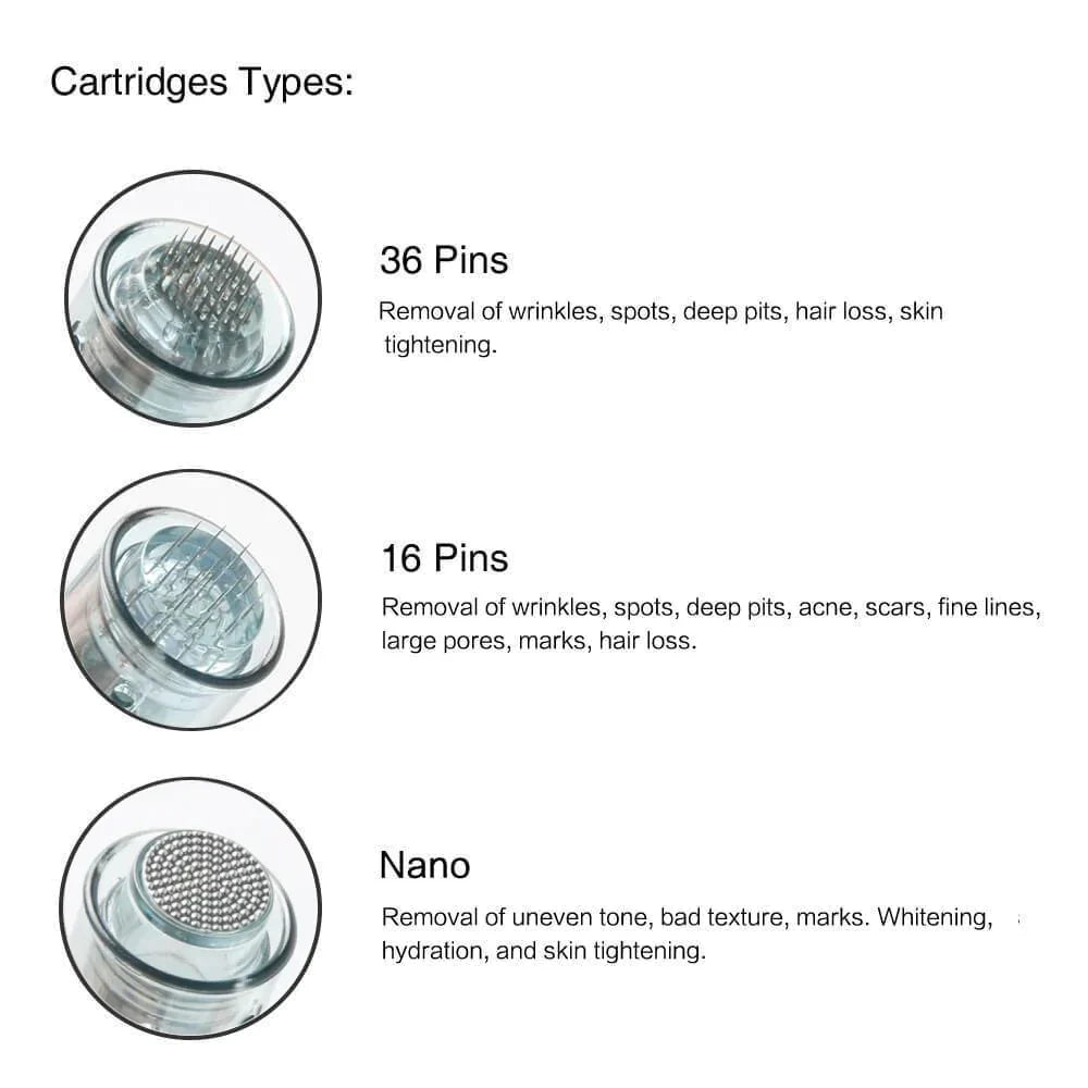 The 36 pin size is ideal for sensitive skin types and those who wish to microneedle larger surface areas. Each cartridge comes in a sterile pack, and the needles are made of high-quality stainless steel.